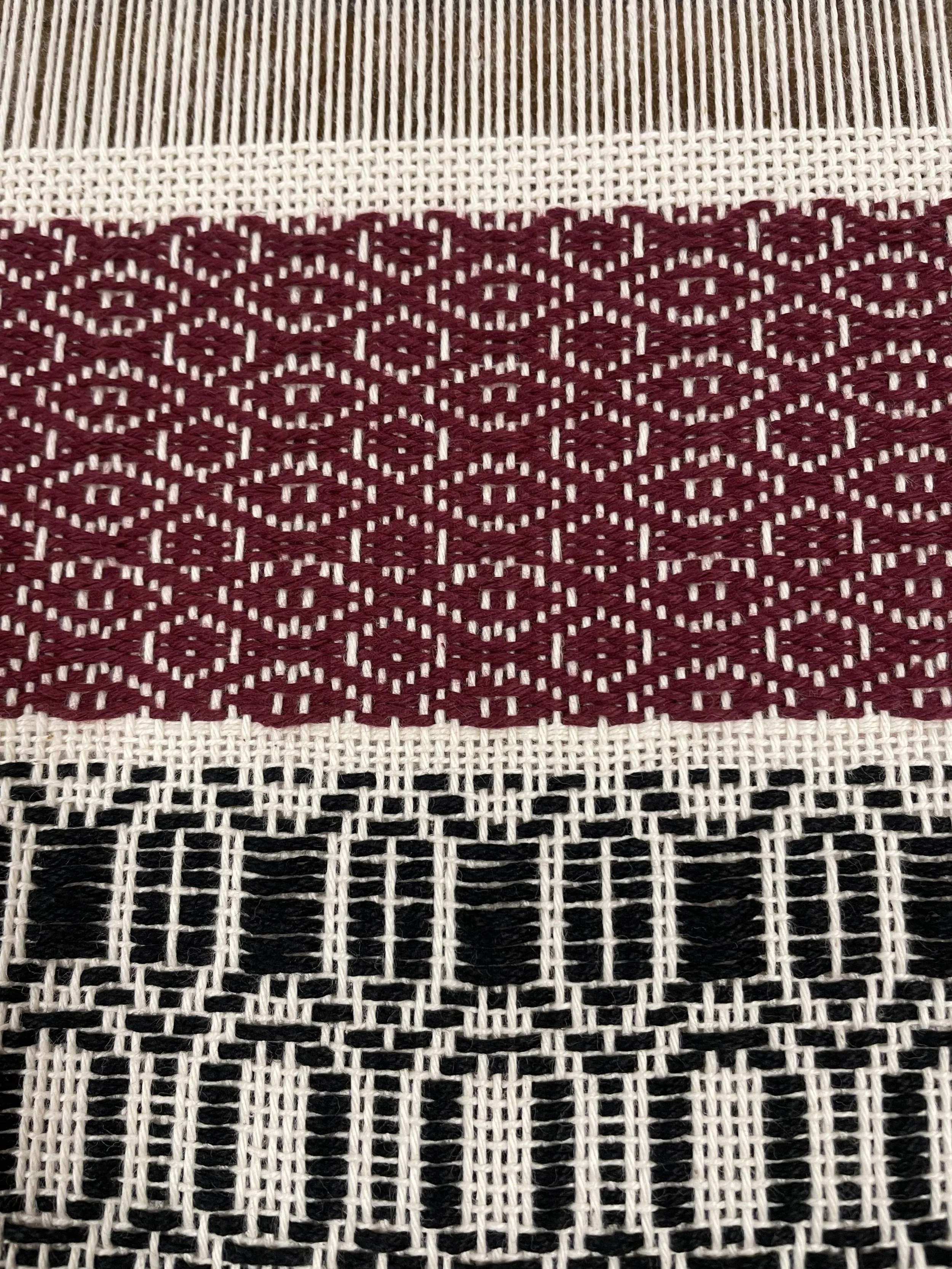 My Project Sampler explored four different patterns. I made a few mistakes but overall I am pleased with my progress on the Nilus Leclerc 6 shaft loom.
